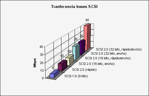 Esto cambió con la especificación 2.0 ya que exigía un mínimo de 12 códigos, por lo que aumentaba la compatibilidad entre dispositivos. Otro punto a favor de SCSI 2.0 es el aumento del ancho de banda de 8 a 16 y 32 bits. Esto se consigue gracias a las implementaciones wide (ancho) y fast (rápido). Combinando estas dos metodologías se llega a conseguir una transferencia máxima de 40 Mbps con 32 bits de ancho (20 Mbps con un ancho de banda de 16 bits).